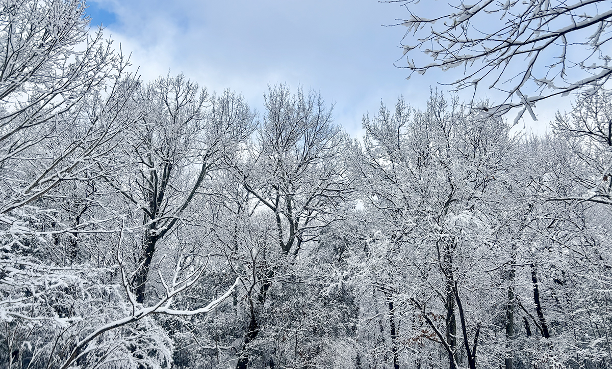 昨日まで降った雪で今朝の河辺の森は一面の銀世界でした。 とっても綺麗なんですが、雪の重さで枝垂れている木がたくさんあったので、木々の雪落としを兼ねてスタッフたちと森の巡回にいきました。 ……