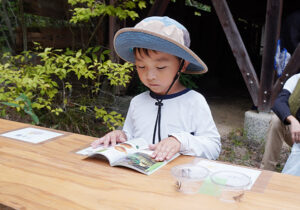 ▼捕まえた生き物たちをこどもたちも仕分けました。写真と見比べながら置いていきます。その後は井野先生とスタッフが仕分けの最終チェック。