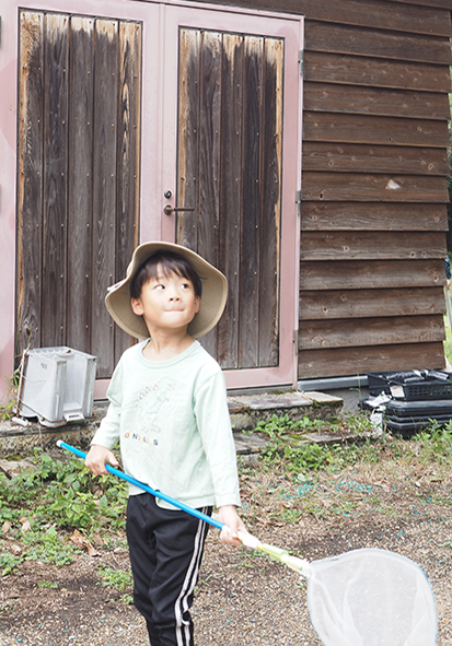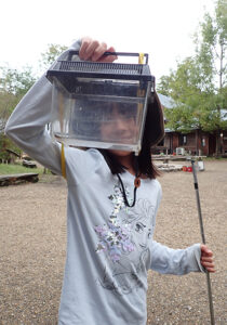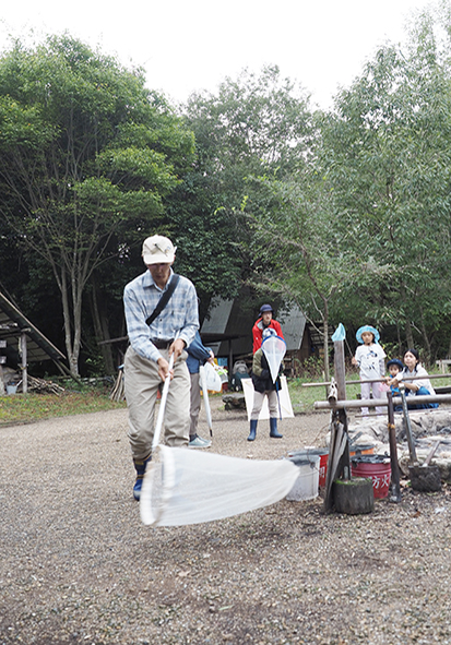 ▼虫網の使い方を説明中。虫の動きに合わせた使い方を分かり易く教えてもらいました。