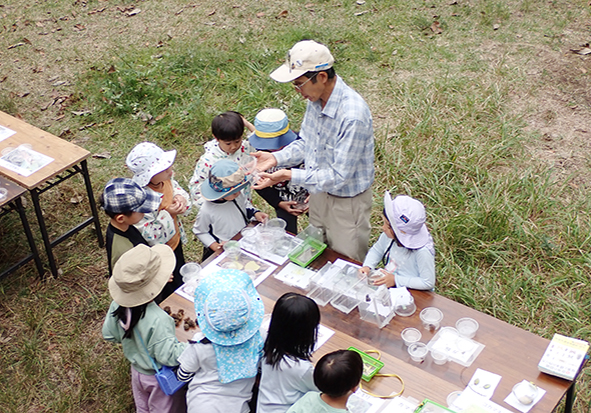 観察会が終わったら、みんなでいきものたちを森へ返してあげました。