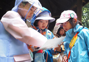 ▼何かを捕まえたら「みてみて~」。そして集まってまじまじと観察する隊員たち。