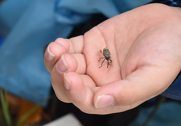 ▼何かを捕まえたら「みてみて~」。そして集まってまじまじと観察する隊員たち。