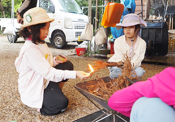 ▼準備が整ったら着火。2チームともマッチ1本で着火できました!