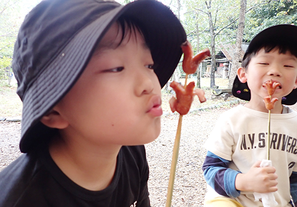▼ミッション「たきびにちょうせん」を見事にクリアした隊員たちには、ごほうびがありました。モリイコ!特製「すみびあぶりそぉせいじ」は美味でした(*‘∀‘)