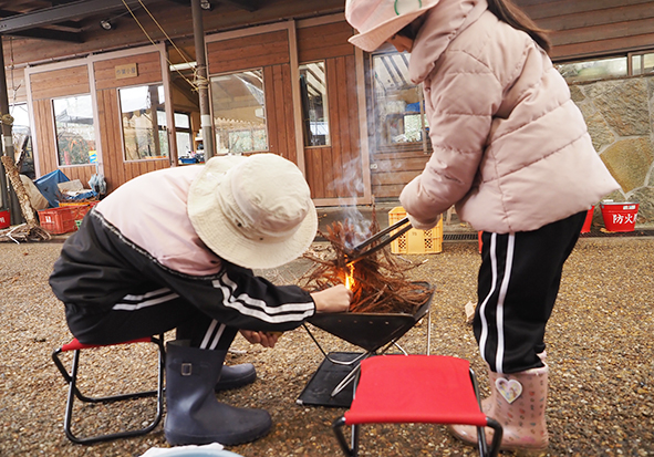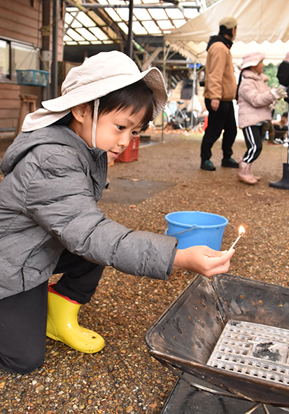 ▼たき火をする前にマッチの付け方をおさらいしたのですが、みんな前回よりも付け方が上手くなっていると感じました。