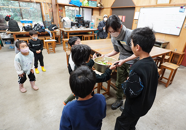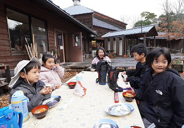 ▼「モリイコ!スープ美味しい!」「ニンジン食べられなかったけど、モリイコ!の豚汁なら食べられた!」と何度もおかわりをしてくれる子がたくさんいました。11時頃からお天気が回復してきたので外でご飯も食べられて良かったね。