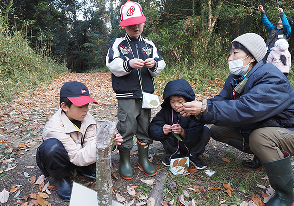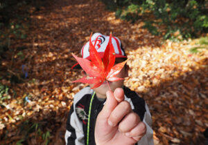 ▼午後からは、次のミッション「秋の森でカラフルさがし!」。いろんなカラフルを見つけに行くため森たんけんに出発です。