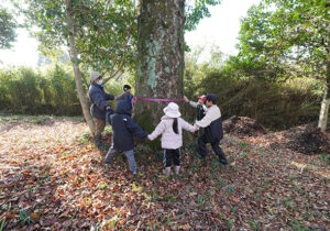 ▼大きなケヤキ、7人で手をつないだら囲めたよ。