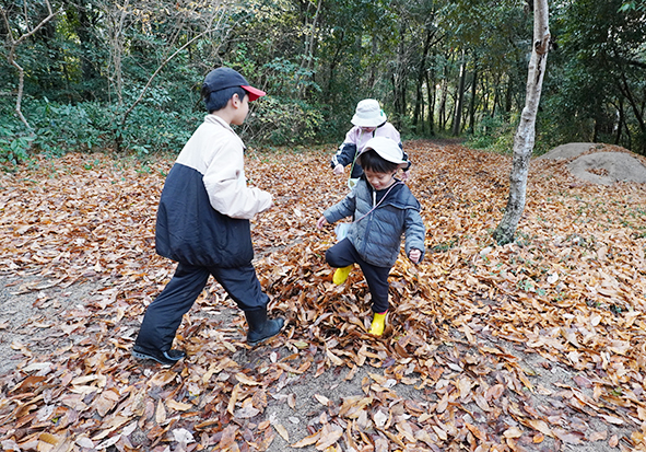 ▼たくさんの落ち葉を集めて集めて…。「ふんだらトランポリンみたいだよ!」と教えてくれました。