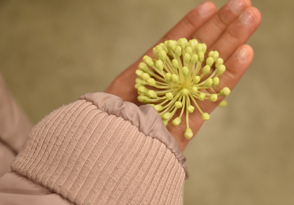 ▼ヤツデの花を指につけたら指輪みたい。素敵♡