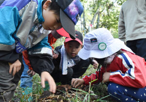 ▼今日はキノコもいっぱい。色とりどりのキノコが見つかりました。かたいかなと思ったら、柔らかくて気持ち良かったね。