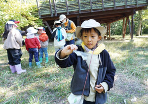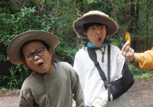 最初は雨上がりの森で、いきものの姿も少ない…と思っていましたが、森たんけんをしていると太陽の日差しもさしてきて、森のいきものたちも姿をたくさん見せてくれましたね。この季節らしくキノコもたくさん見つかりました。