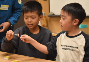▼隊長たちにサポートしてもらった子もいますが、どの子も一生懸命マッチにチャレンジする姿が見られました。よくがんばったね!