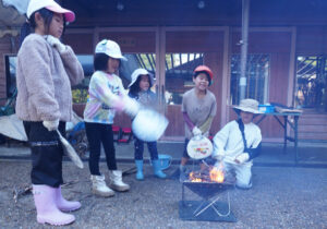 最初ウインナーが嫌いだった子も、自分たちでつけた火で、ゆっくりじっくり焼いたウインナーを食べて「もう1個食べたい」と最後は笑顔で教えてくれました。良かった~!