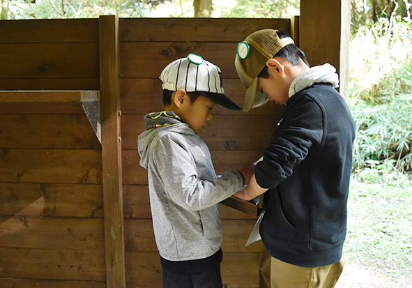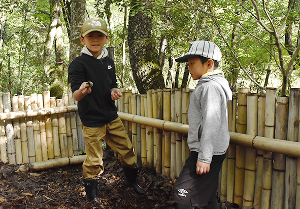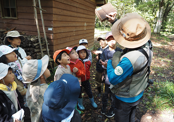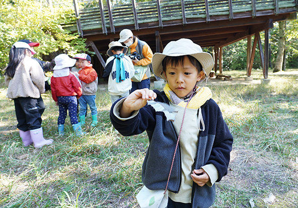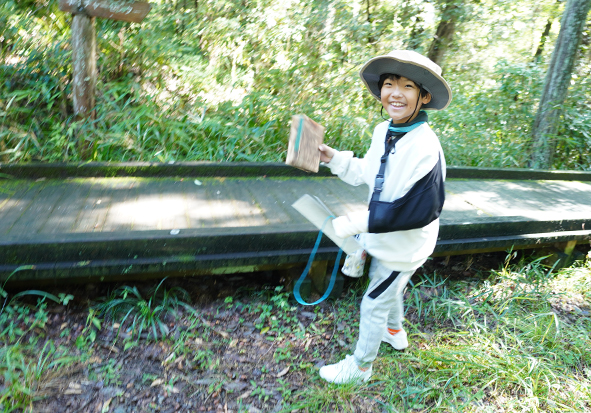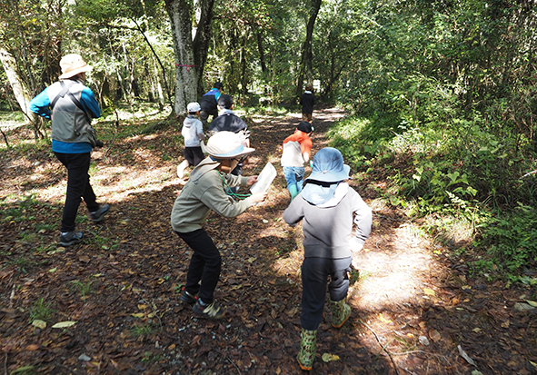 最初は雨上がりの森で、いきものの姿も少ない…と思っていましたが、森たんけんをしていると太陽の日差しもさしてきて、森のいきものたちも姿をたくさん見せてくれましたね。この季節らしくキノコもたくさん見つかりました。