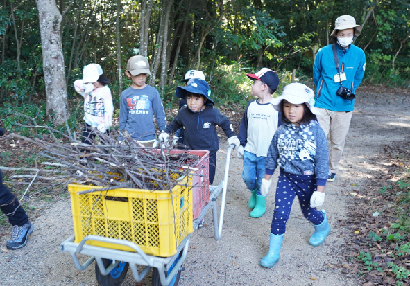 ▼説明を聞いたら森へ柴拾いへでかけました。