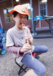 最初ウインナーが嫌いだった子も、自分たちでつけた火で、ゆっくりじっくり焼いたウインナーを食べて「もう1個食べたい」と最後は笑顔で教えてくれました。良かった~!
