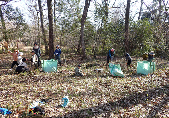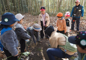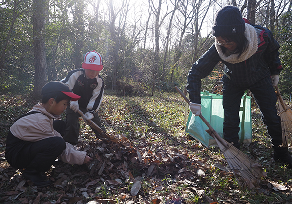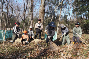 ▼終了間際の森の様子。ボーイズたちのがんばりの成果、わかります?足元にたくさんあった落ち葉がなくなり、地面には緑色の葉っぱが見られます。日の光をたくさん浴びて、春にはたくさんのたねこちゃんから芽が出たらいいなぁ。