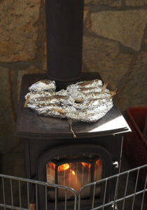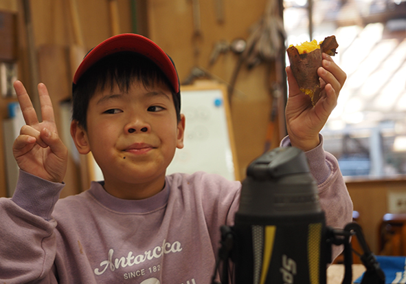 ▼落ち葉かきから帰ると、お芋が焼きあがっていました!おいしそう!