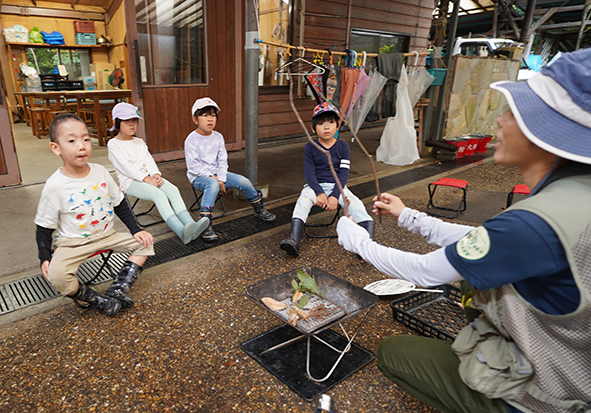 今日はお休みの子が多く、森も雨でどんよりとしていたので、どんな1日になるかと思っていましたが、みんな雨でも笑顔いっぱいで、さらに森たんけんのときも、たき火の時も協力し合ったり、ほめあったり、気付きを与え合ったり、よいチームワークだなぁと感心していました。