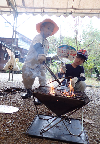 たき火には、乾いた葉、枝が必要!というのを身をもって知ることができましたね。