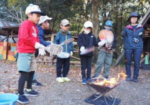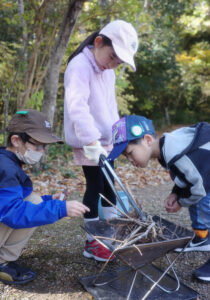 今回のテーマは「秋を感じよう!たき火でごはんと秋の森たんけん!」。