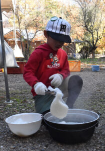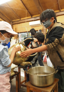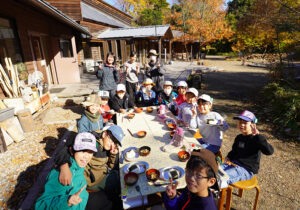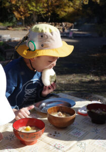 ▼豚汁は「美味しすぎて無限に食べてしまう!」「家に持って帰りたい」「ここでしか食べられへんなぁ」「来年もモリイコ!来て、もう一回たべたい!」と言ってくれていました。O隊長の味付け、本当に美味しいんですよ~♪中には4杯も5杯もおかわりした子も。最高は6杯でした‼みんなで作って食べた美味しいおにぎりと豚汁をずっと覚えててくれると嬉しいです。