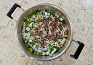 ▼具だくさんのお鍋を豚汁担当のO隊長に「お願いします!」と渡して調理のバトンタッチです。