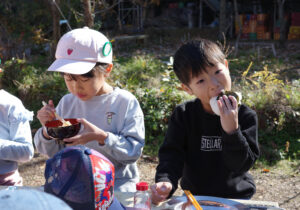 ▼豚汁は「美味しすぎて無限に食べてしまう!」「家に持って帰りたい」「ここでしか食べられへんなぁ」「来年もモリイコ!来て、もう一回たべたい!」と言ってくれていました。O隊長の味付け、本当に美味しいんですよ~♪中には4杯も5杯もおかわりした子も。最高は6杯でした‼みんなで作って食べた美味しいおにぎりと豚汁をずっと覚えててくれると嬉しいです。