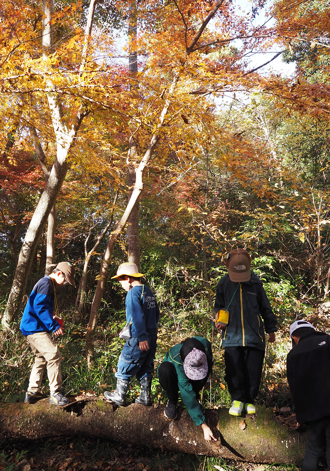 ▼午後からは、次のミッション「秋の森でカラフルさがし!」。今日はトレイルが人気で何度も登る子がいて、中には4周する子もいました!いっぱい食べたし、動いてお腹もすっきりしたかな⁉
