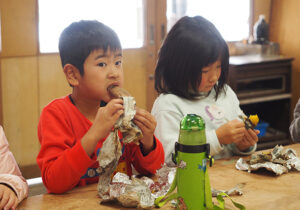 ▼ミッション②をしている間に焼き芋も完成。ほくほくでスイートポテトのようなお芋をみんなでいただきました♪