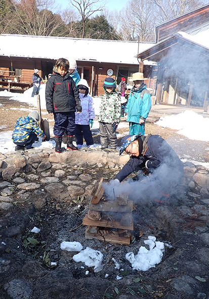 ▼諦めず何度も何度も挑戦し、見事薪に火をつけることができました!よし、これで焼き芋が食べられます♪