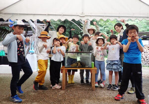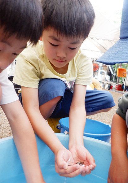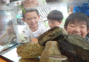 ▼つかまえたいきものたちを水槽に入れて観察会。ある隊員は「なんか琵琶湖博物館みたい」って(*‘∀‘)