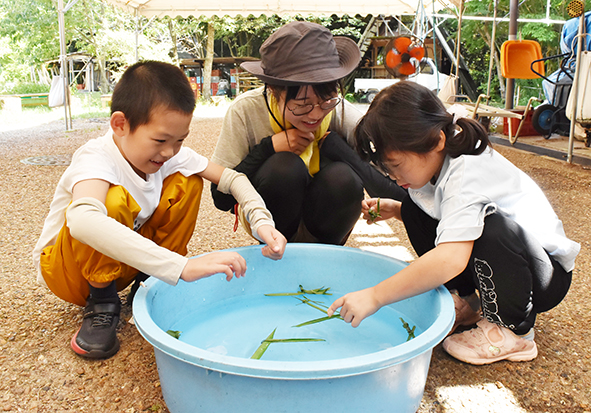 午後のミッションは「川のいきものをさわってみよう」からスタートです。
