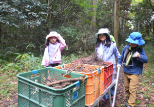 ▼道具はありますが、燃やす枝や杉葉はありません。みんなで森へ柴刈りへ出かけました。