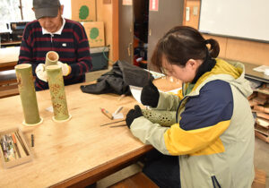 ▼穴の処理ができた後は、カセットコンロの火で油抜きをしました。磨くとどんどん綺麗になっていきましたね。