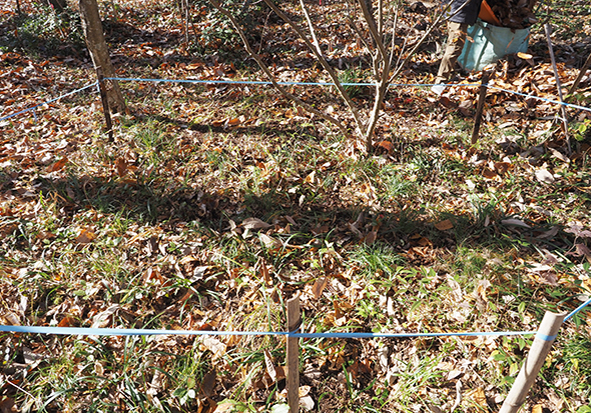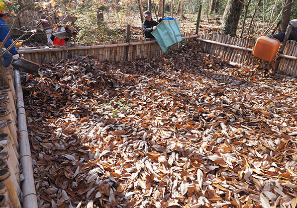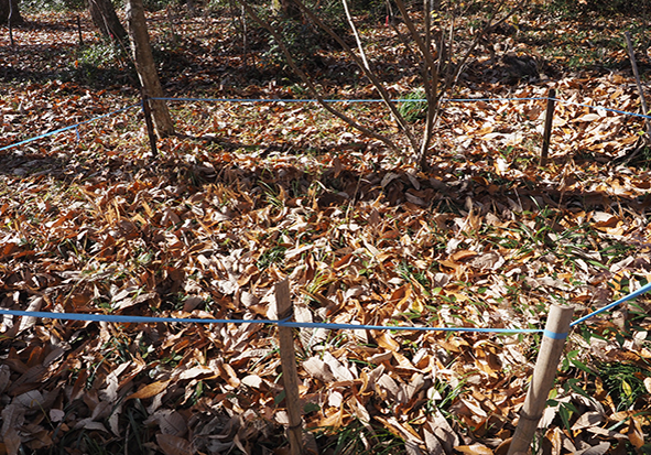 ▼(左)作業開始直後 (右)作業終了間際 すごい量のおちばかきをしていただきました。
