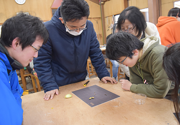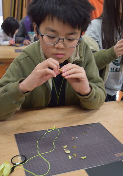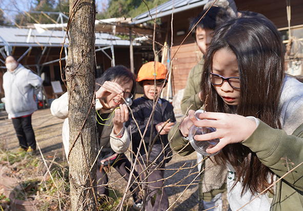 ▼「冬芽はどこについてるの?」「えぇ~!これ?」「思ったよりも小さい!」「あっ、ほんとや顔がある!」などと言いながら冬芽を観察されていました。
