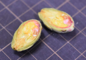 ▼こちらは「ヤブツバキ」のつぼみです。中を見ると、ピンクの花びら、おしべやめしべになるものがギューっと小さく入っている様子が見られました。
