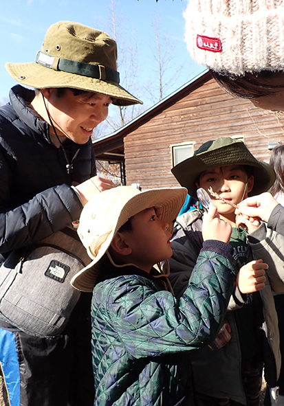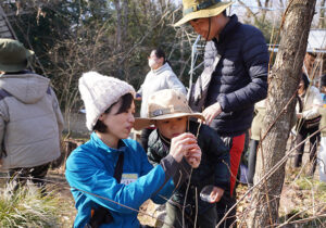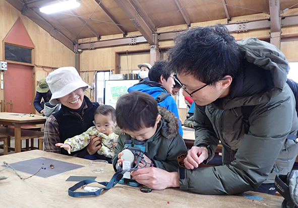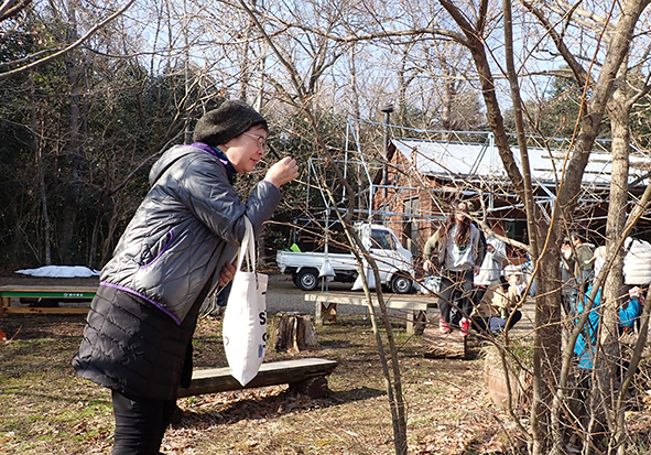 ▼9時~10時までは観察会。今回のテーマは「冬芽~木の芽はいのちのカプセル~」でした。冬の木の芽には、春に伸びるための葉や茎、花のつぼみなら花びらやおしべ、めしべがギューっと小さくおりたたまれています。その姿はまるでいのちを閉じ込めたカプセルのようです。そんなお話をさせていただいた後、どこに冬芽がついているのか観察に行きました。
