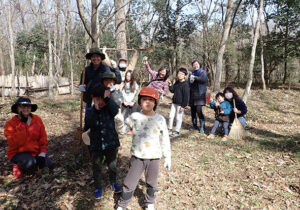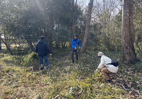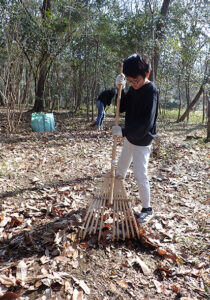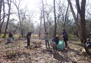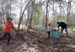 ▼こちらは落ち葉かきチーム。カブトムシベット周辺にはシュンランやスミレなどが広範囲に広がっています。たくさんの方にご協力いただいたので下草にしっかり光りが当たるようになりました。