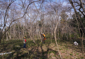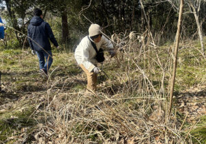▼こちらは、モミジの林の整備チームです。樹上伐採を専門職にされておられるAさんがご参加くださり、手が届かないような場所は梯子で木に登って伐ってくださいました!Aさんからはいつも樹木への愛を感じます。モミジも格好よくなりました。ありがとうございました!
