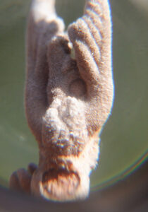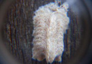 ▼途中でコカマキリの卵を見つけたので、これもループで覗いてみました。複雑な形がよく見えます。
