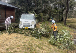 ▼早速スタート!こちらはチェーンソーで太めの木を伐り倒していただきました。