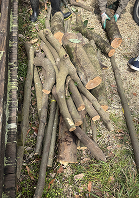 ▼午後からは、伐った木の後処理を行いました。まっすぐな幹は工作で使用し、太い部分は乾かして薪にします。