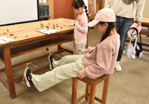 ▼モグラの重さと同じくらいの自然物(石、木の枝、葉っぱなど)をあつめる天秤ゲーム。
