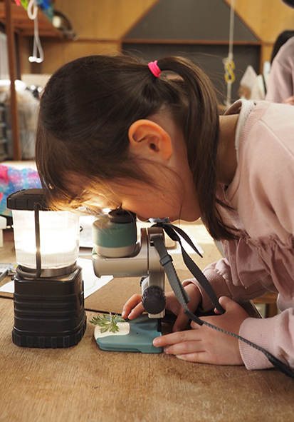 ▼ファーブル君(顕微鏡)で観察からスケッチまでします。