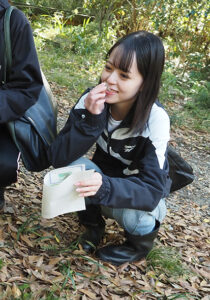 活動終了後の報告会の際、「今日一日活動していただきましたが、朝、森に来た時よりも河辺いきものの森っていいなぁと思った方はどのくらいおられますか?」という質問をさせていただくと、全員の方が「は~い!」と手を挙げてくださいました。私たちは、普段、子どもたちの対応がほとんどなので、大勢の大人の皆さまと活動させていただくことで気付かせていただくことがたくさんあり、とても楽しく貴重な一日となりました。