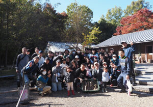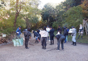 こちらは、林内整備①(ウラゲエンコウカエデの下草処理)です。草の実の多い林床なので、光が当たるようにするため、大きくなると日陰を作ってしまう常緑樹を中心に伐っていただきました。小さな子どもたちも頑張ってくれ、あたたかな雰囲気に包まれていました。