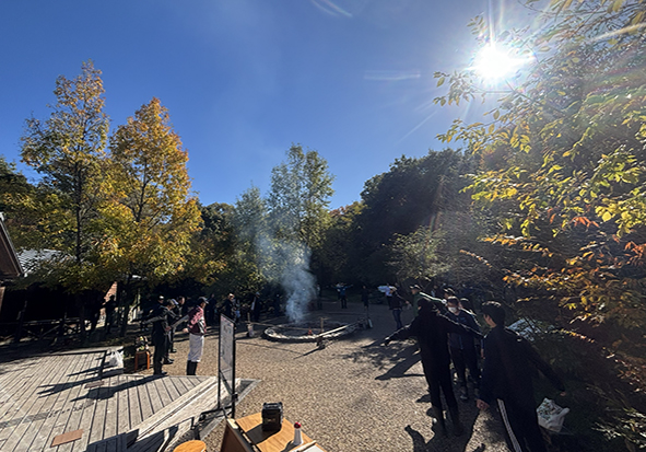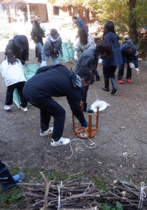 こちらのチームは、薪作りです。以前伐採した材を細かく切り、子どもたちがたき火で使う用の小さな薪を作っていただきました。